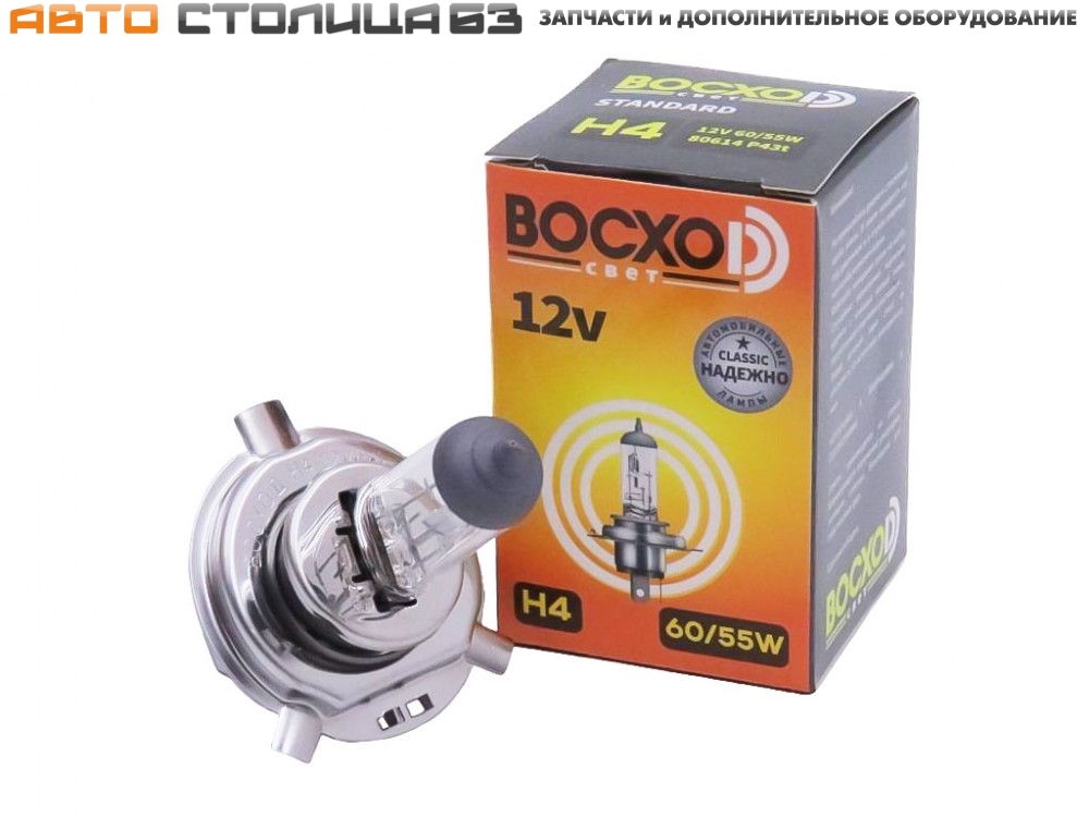 Автолампа галогеновая H4 12V 60/55W ВОСХОД, 80614, Стандартное оборудование и запасные части ЛАДА ГРАНТА