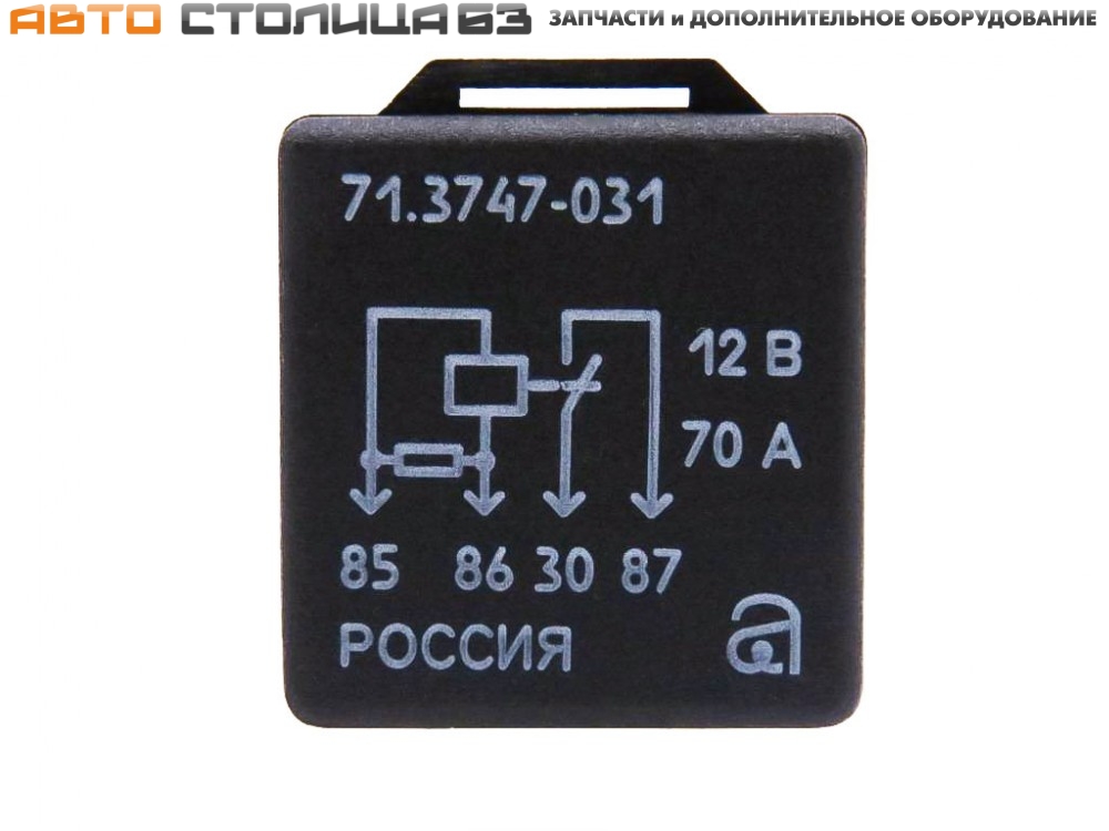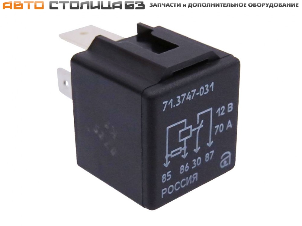 Реле 4-х контактное силовое 70А 12В. Производитель – АВАР (г. Псков). Применяется в автомобилях Лада Веста, Гранта FL, Нива Трэвел, Лада Искра как реле стартера.